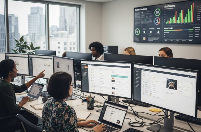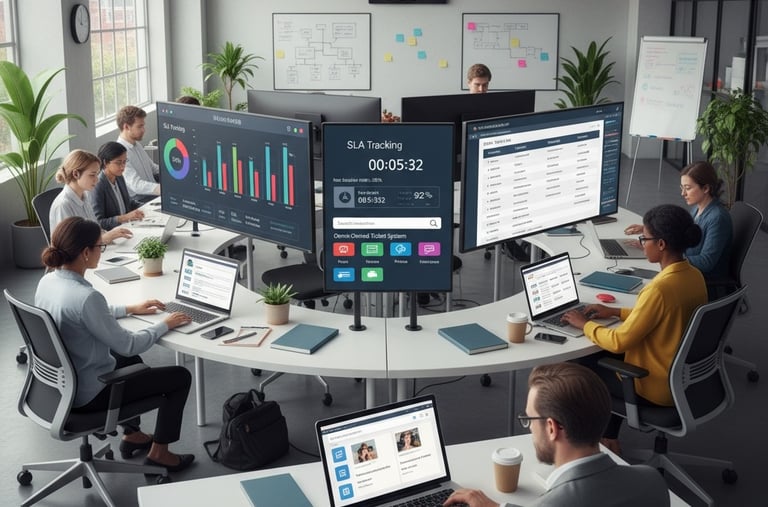 Helpdesk platforms, knowledge bases, feedback forms, SLA tracking, and omni-channel ticket integration.